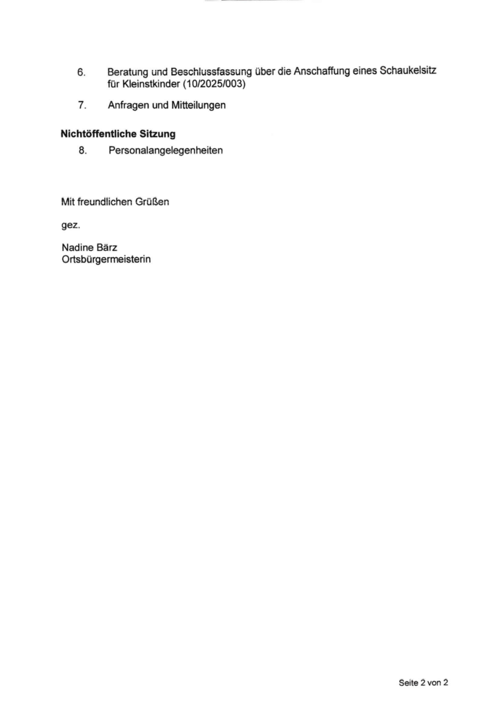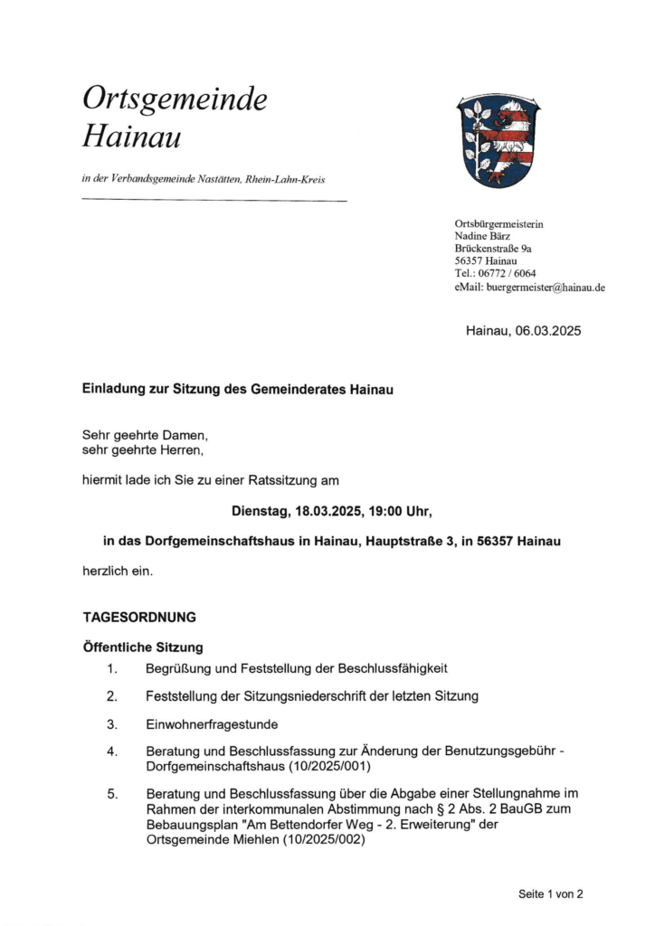 Einladung zur Sitzung des Ortsgemeinderates Hainau am 18.03.2025
